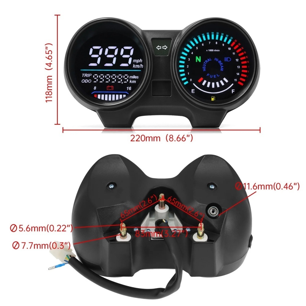 El nuevo medidor digital LCD CG125 CG150 CG160 está diseñado con una carcasa de plástico especialmente diseñada, lo que añade durabilidad adicional y una excelente protección.Cuenta con una pantalla LED de alta calidad que indica la velocidad actual y otra información esencial.