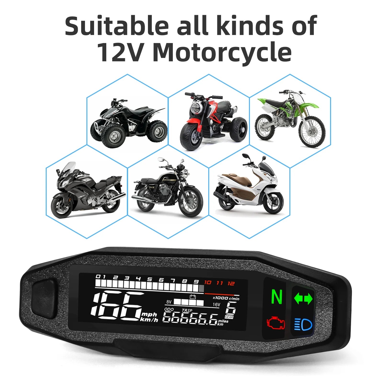 3.Mejor rendimiento: Este potente velocímetro electrónico digital ofrece un amplio rango de 0-12000 RPM para garantizar un monitoreo preciso del rendimiento del motor de su motocicleta,y un voltaje de DC12V admite un funcionamiento estable.