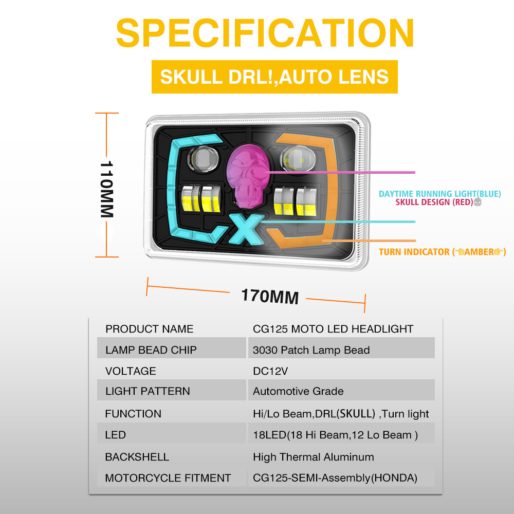 YAYE CG125 Lente de Proyector Óptico Cráneo Rojo Semi-ensamblado Accesorio LED para Motocicleta Faro 14