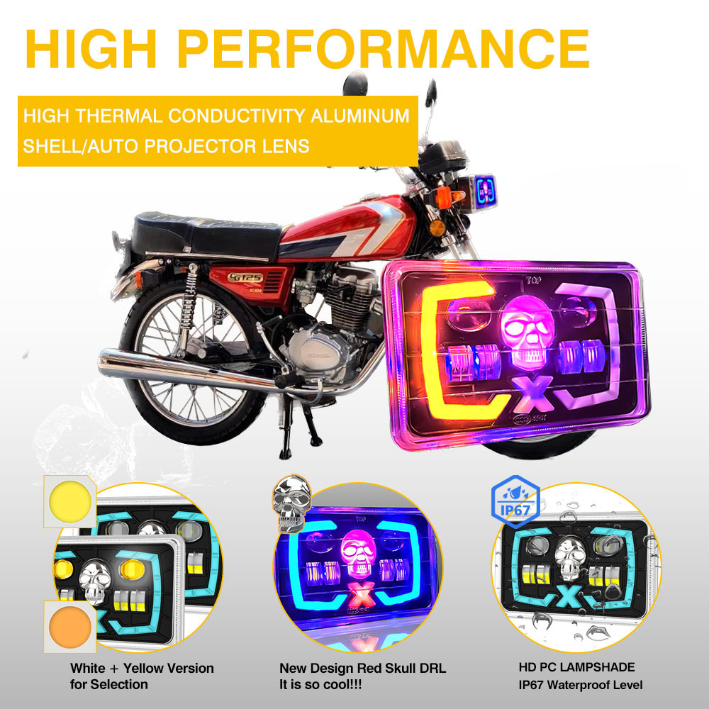 YAYE CG125 Lente de Proyector Óptico Cráneo Rojo Semi-ensamblado Accesorio LED para Motocicleta Faro 2