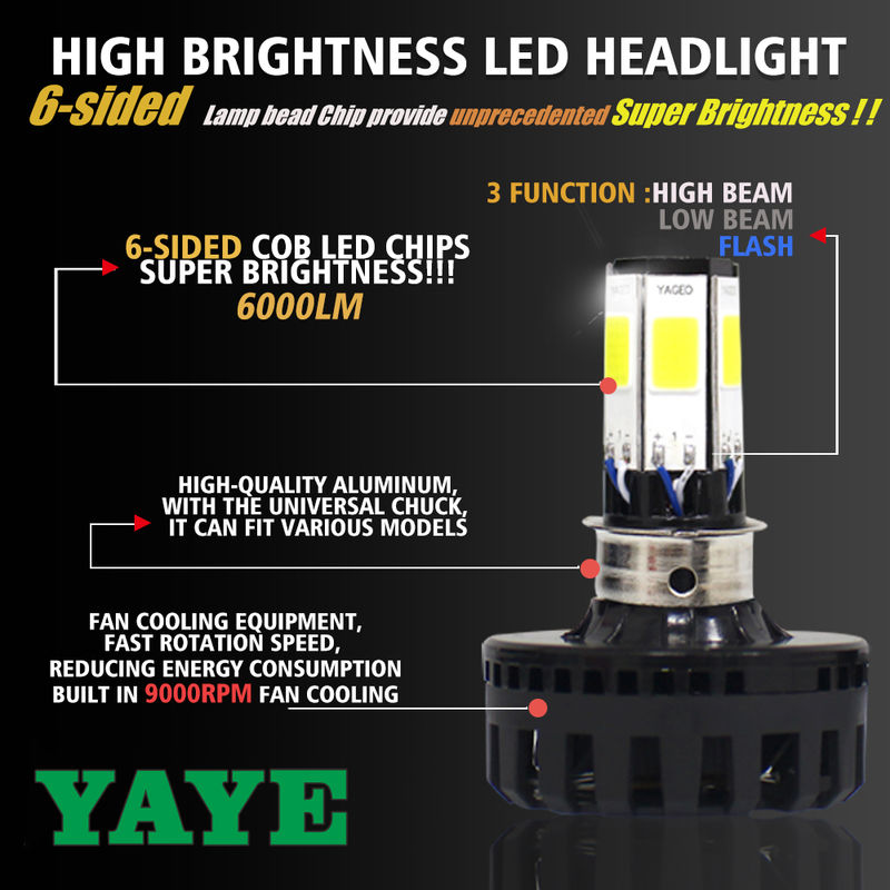 6 Chip de la lámpara lateral de la perla de la motocicleta construida en el faro de refrigeración del ventilador